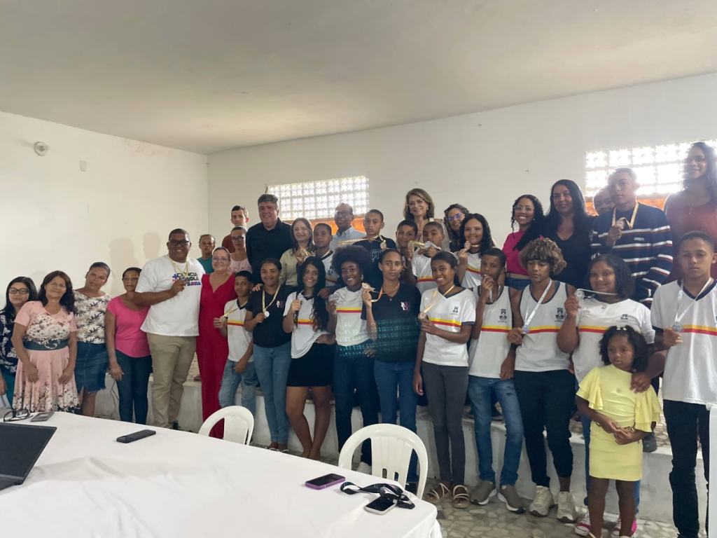 Alunos da escola Luís Eduardo Magalhães são homenageados com medalhas de ouro, prata e bronze.