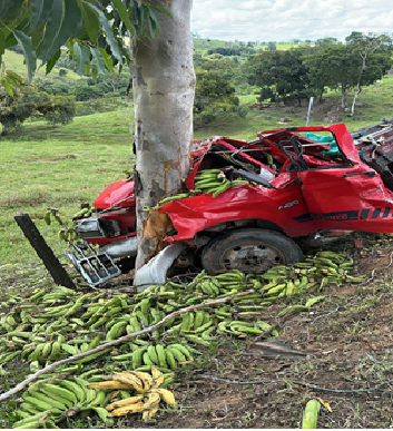 Após o impacto, a F-4000 saiu da pista e acabou batendo em um pé de eucalipto às margens da rodovia.