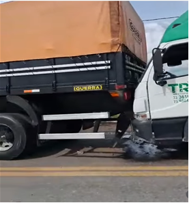 Ainda segundo relatos, um caminhão que seguia logo atrás não conseguiu frear a tempo e acabou colidindo na carreta que estava à sua frente, agravando a situação.