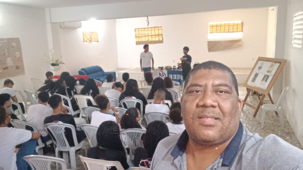 Professor Jackson Santos juntamente com os alunos da escola Luís Eduardo Magalhães