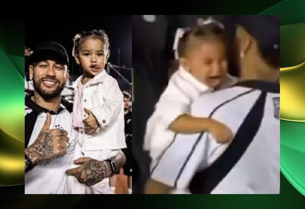 A criança chegou a se desequilibrar e foi amparada pelo pai. Ela saiu dos gramados chorando no colo de Neymar. Vídeos compartilhados na internet mostram o momento exato em que a filha de Bruna Biancardi é acertada de forma acidental.