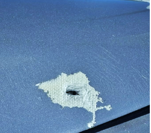 Vejam as imagens dos tiros na aeronave abaixo: