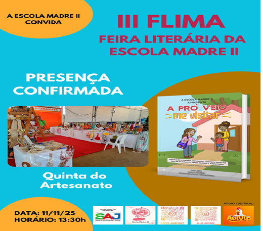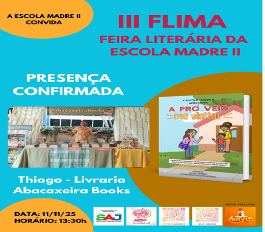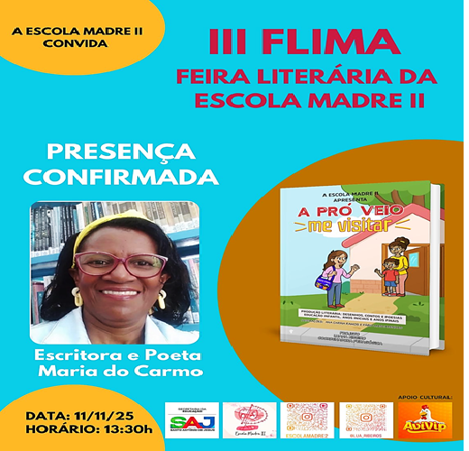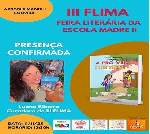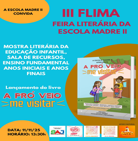 Com tantas atrações e convidados especiais, a III FLIMA promete ser um dia de celebração à leitura, à criatividade e ao talento dos alunos, reafirmando o compromisso da Escola Madre Rosário II com uma educação que valoriza a arte e a cultura como instrumentos de transformação social.