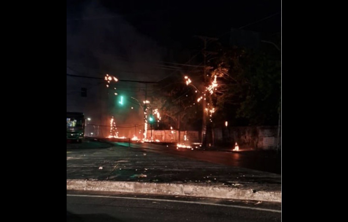 Uma fiação pegou fogo e atingiu um poste na noite deste sexta-feira (23), deixando a localidade conhecida como São Rafael, sem energia.