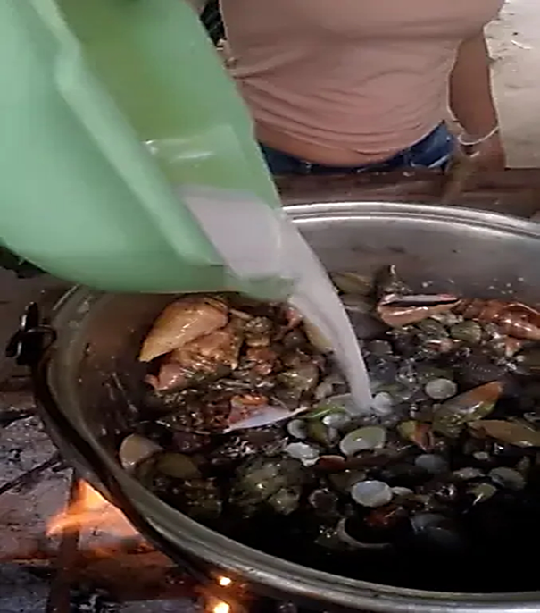Caranguejos sendo cozinhados no leite de coco- Foto -Reprodução