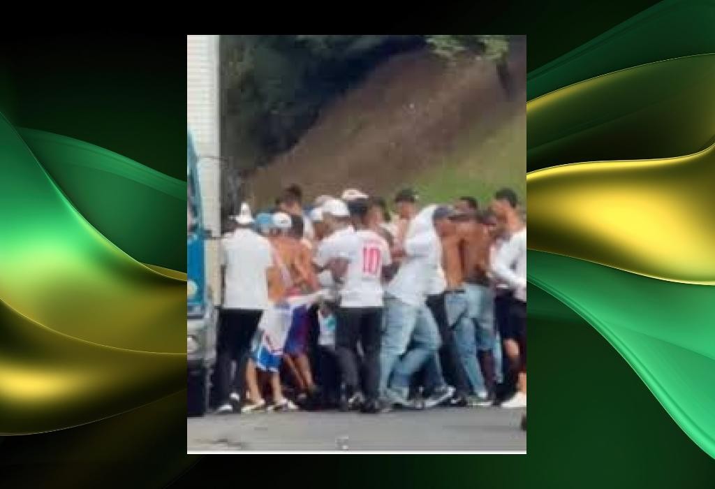 As imagens que circulam nas redes sociais mostram um grupo de torcedores com uniformes da Torcida Organizada Bamor agredindo um homem que estava caído no chão, no bairro de São Rafael, em Salvador.