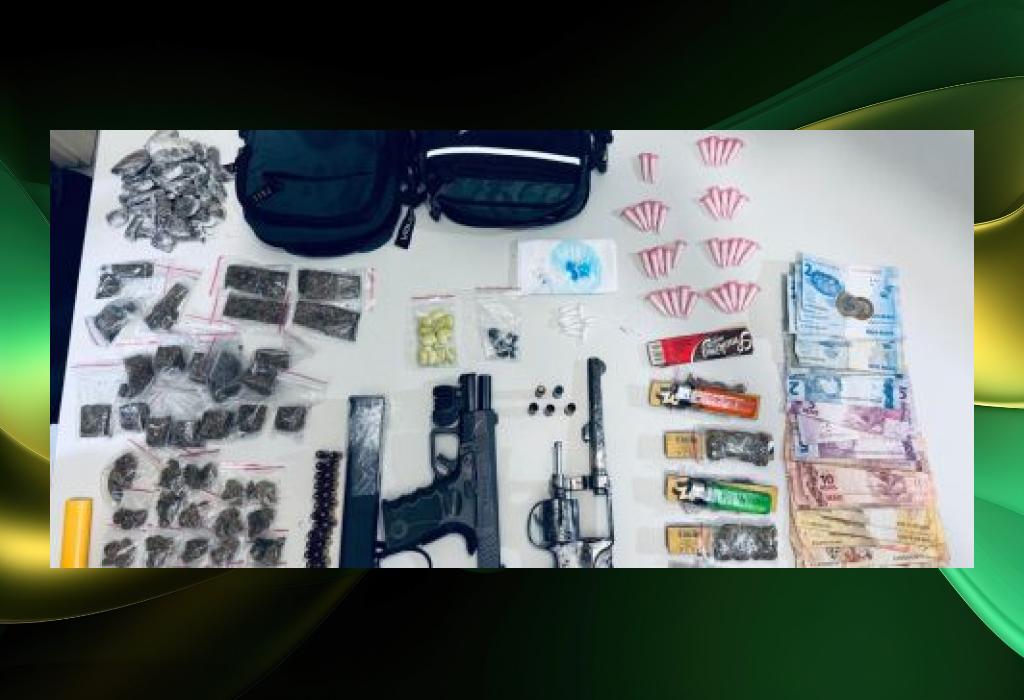 Com o líder de facção e o comparsa foram apreendidos uma pistola, um revólver, carregador, munições e porções de entorpecentes.