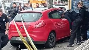Após os disparos, Antonio Sergio Tosca Junior, que dirigia um Fiat Bravo vermelho, perdeu o controle da direção e colidiu contra a fachada de loja de revenda de veículos, além de atingir as grades de um salão de beleza ao lado.