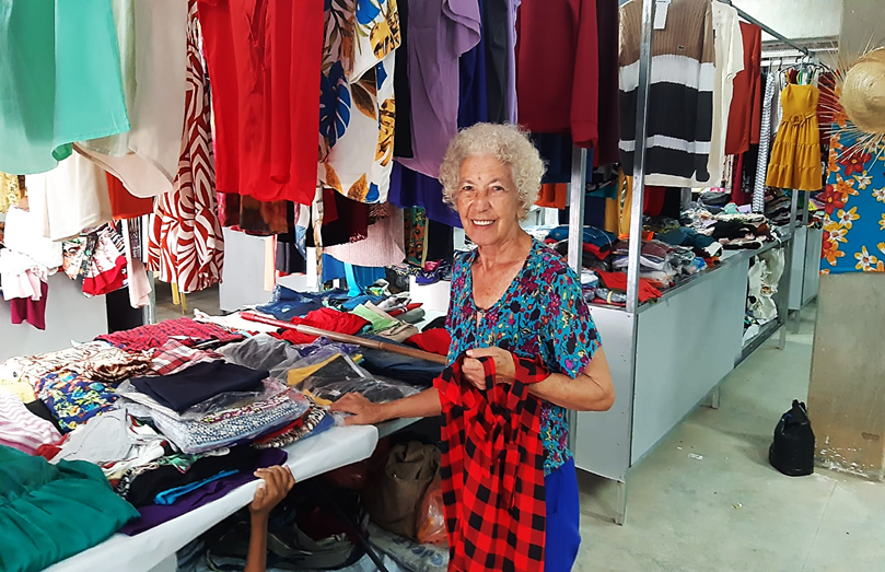A permissionária Alice feliz da vida pelo novo espaço dentro da ” Estação da Moda”