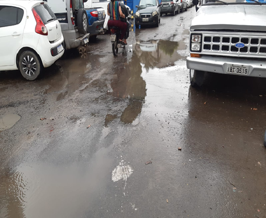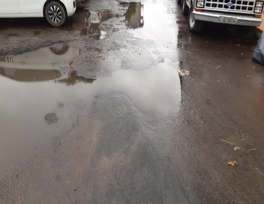 Para piorar, o pequeno trecho asfaltado pela atual administração já apresenta sinais de deterioração. Em frente à oficina de Duda Alinhamento e à Creche Rotary, poças d’água se formam sempre que chove, prejudicando o trânsito de pedestres e motoristas.