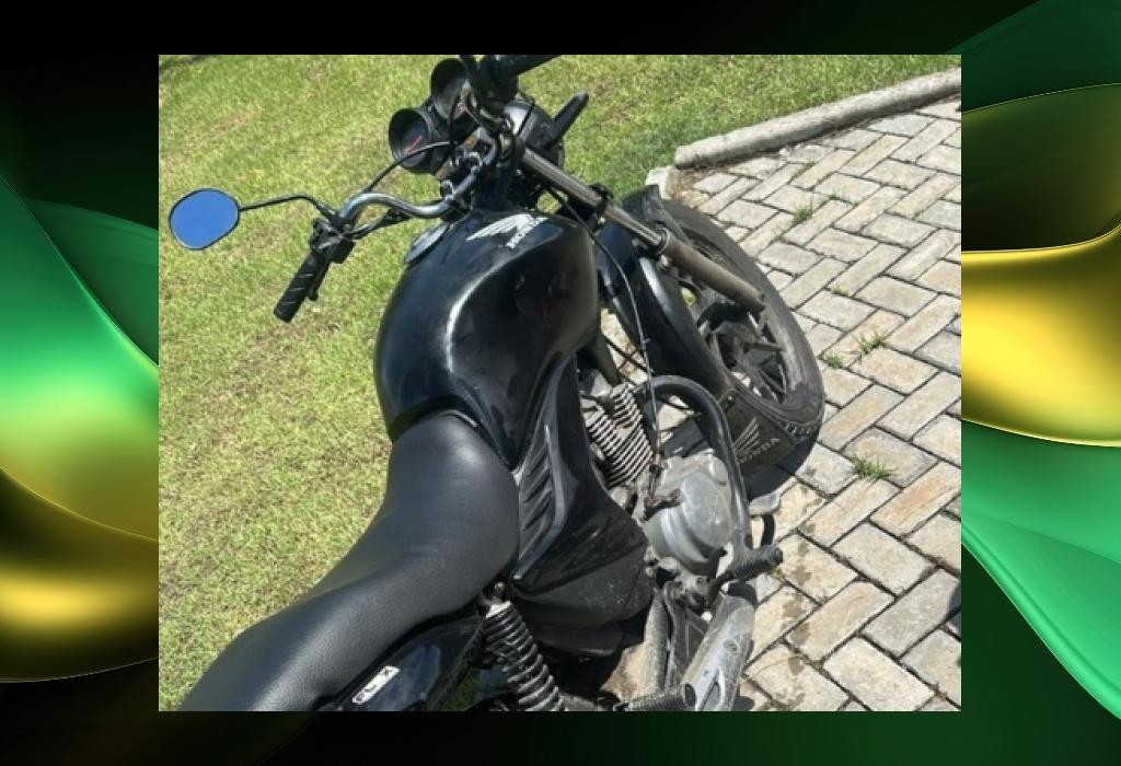 No local, os policiais identificaram uma motocicleta Honda Fan preta que apresentava diversos sinais de fraude, incluindo chassi e motor adulterados, além de placa clonada. Após verificação, foi confirmado que o veículo havia sido roubado no município de Vera Cruz.