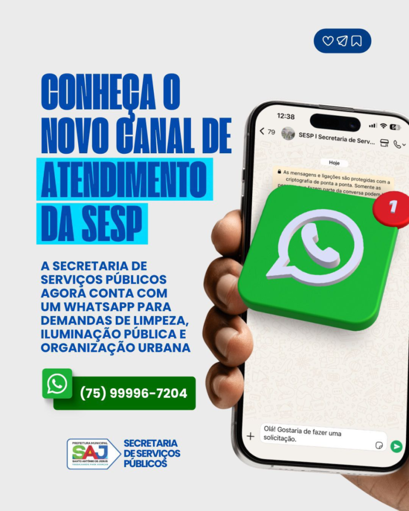A Prefeitura Municipal de Santo Antônio de Jesus, por meio da Secretaria de Serviços Públicos (SESP), lançou um novo canal de atendimento ao público com o objetivo de facilitar a comunicação direta com a população e agilizar a resolução de demandas do dia a dia.