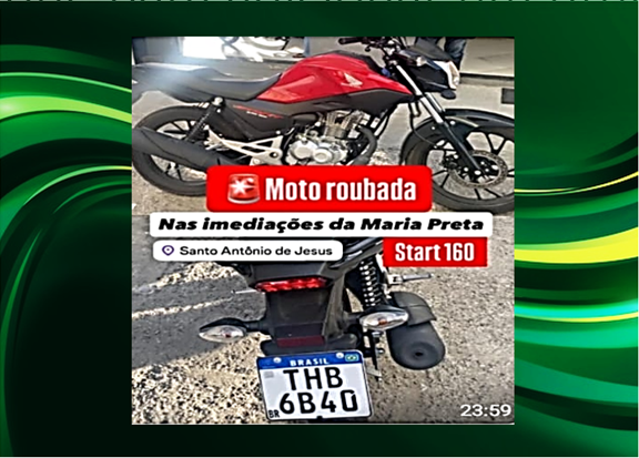 Uma motocicleta da marca Honda, modelo Start 160cc, de cor vermelha e placa THB 6B40, foi tomada de assalto na noite desta quarta-feira (08/01/26), nas imediações do bairro Maria Preta, em Santo Antônio de Jesus. De acordo com as informações iniciais, os meliantes abordaram a vítima e, após o roubo, fugiram em rumo ignorado. Até … continue