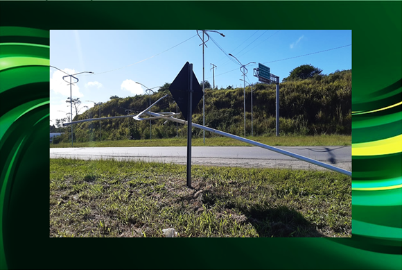 Poste da nova iluminação pública está caído na BR 101, na Praia do Dendê em Santo Antônio de Jesus.