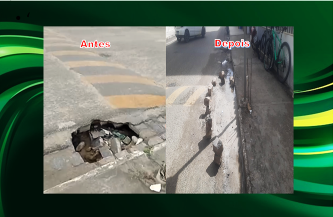 Reclamação de internauta é atendida e buraco em rua é fechado pela Sec. de Infraestrutura. Relembre as imagens.