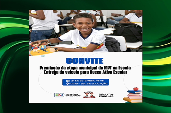 A Prefeitura Municipal de Santo Antônio de Jesus, por meio da Secretaria Municipal de Educação, convida os veículos de comunicação para a cerimônia de premiação da etapa municipal do Projeto MPT na Escola, que será realizada na quarta-feira (24), às 9h, no NAPEF (Secretaria de Educação). O evento contará com a presença de gestores, coordenadores … continue