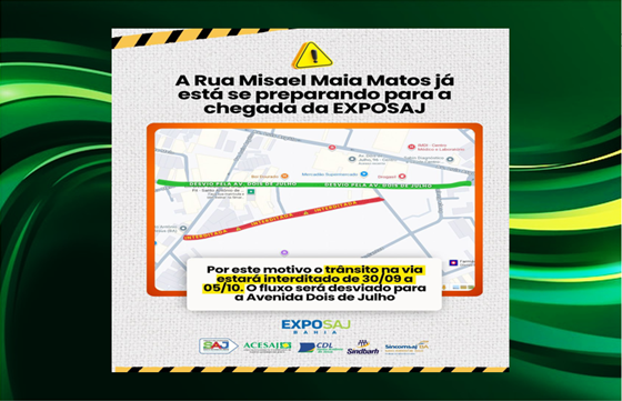 SAJ: Prefeitura informa sobre interdição provisória da Rua Misael Maia para montagem da ExpoSAJ Bahia
