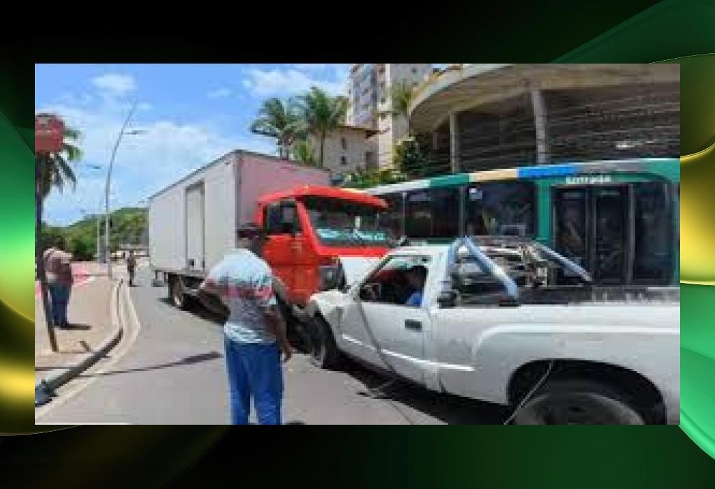 Um acidente de trânsito na Avenida Oceânica, no bairro da Ondina, em Salvador, na tarde desta segunda-feira (05/01/26), entre um caminhão e uma caminhonete deixou duas pessoas presas nas ferragens dos veículos no local da batida.