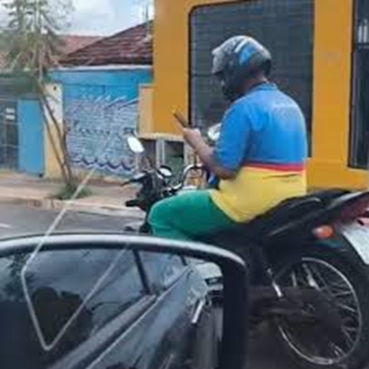 Homem flagrado pilotando a moto e fazendo uso do celular